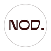 Logo with the text 'NOD. STUDIOS' in dark red, with 'NOD.' in large letters and 'STUDIOS' curved above it.